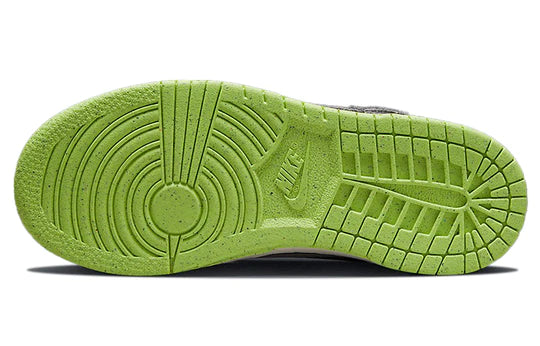 Embrace the iconic streetwear style of Nike’s Dunk Low SE 'Halloween – Cauldron' and embrace your inner spooky spirit. This sneaker features a dark grey leather upper with cradle overlays, a ‘shadow’ Swoosh on the lateral side and a reflective Nike wordmark at the back heel. The sneaker is mounted on an off-white midsole and completed with a lightly speckled Scream Green rubber outsole that provides you with maximum grip for any occasion.